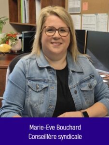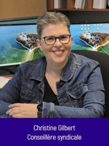 Les trois membres du personnel de bureau, soit la présidence et les personnes conseillères syndicales, sont tous habilités à vous répondre sur les sujets suivants :